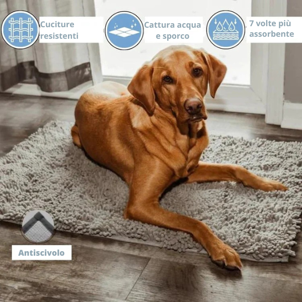 Il Tappeto CleanPattoune™ è pensato per mantenere pulita la tua casa dai segni di fango, acqua e sporco portati dalle zampe dei tuoi animali domestici.