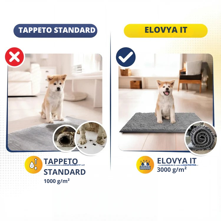 È realizzato con fibre super assorbenti, che catturano fino a 7 volte più acqua e sporco rispetto ai tappeti tradizionali.