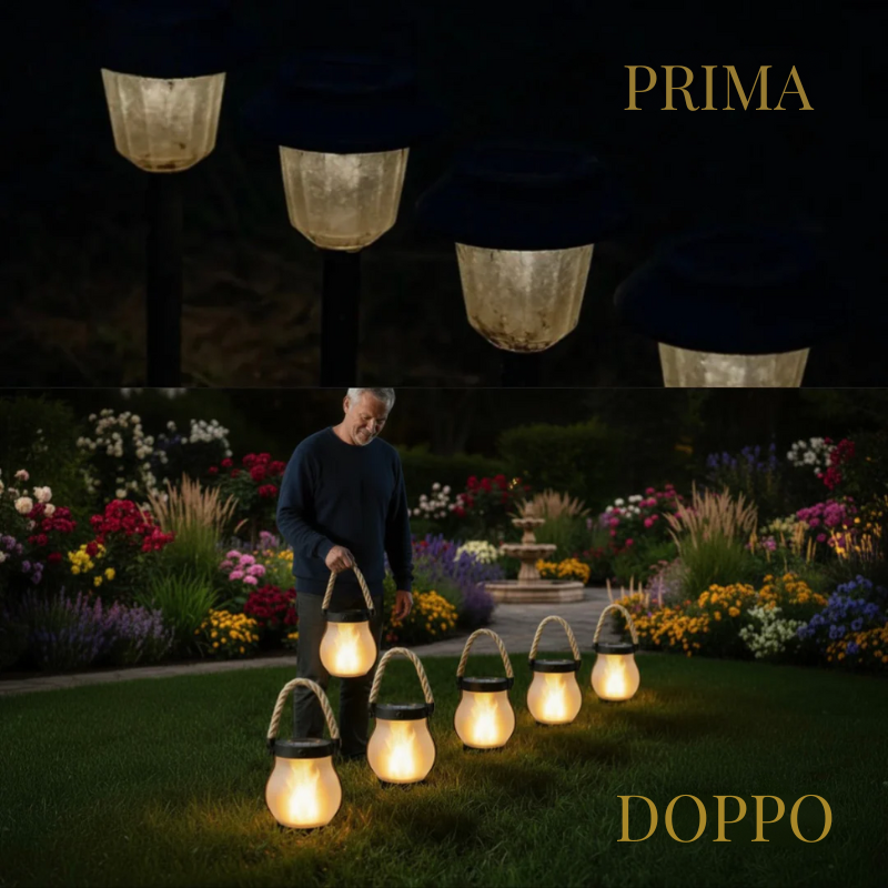 Sì, la lanterna SolFlamma™ emette una luce calda d’atmosfera, ideale per un giardino, una terrazza o un vialetto. Non è un proiettore, ma un’illuminazione decorativa potente e accogliente.