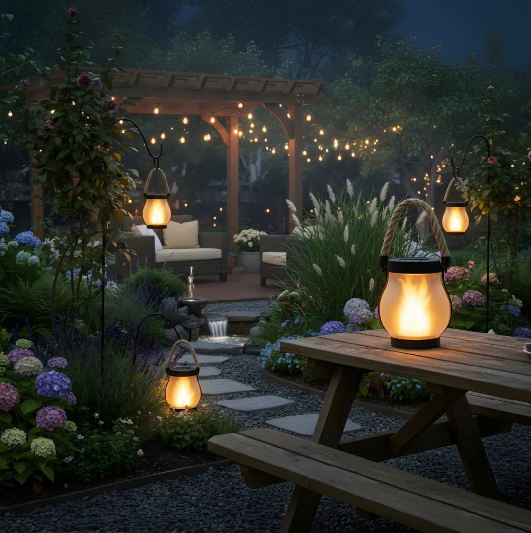 La lanterna SolFlamma™ diffonde una luce calda e vivace che valorizza il tuo giardino, terrazza o balcone, in ogni stagione.