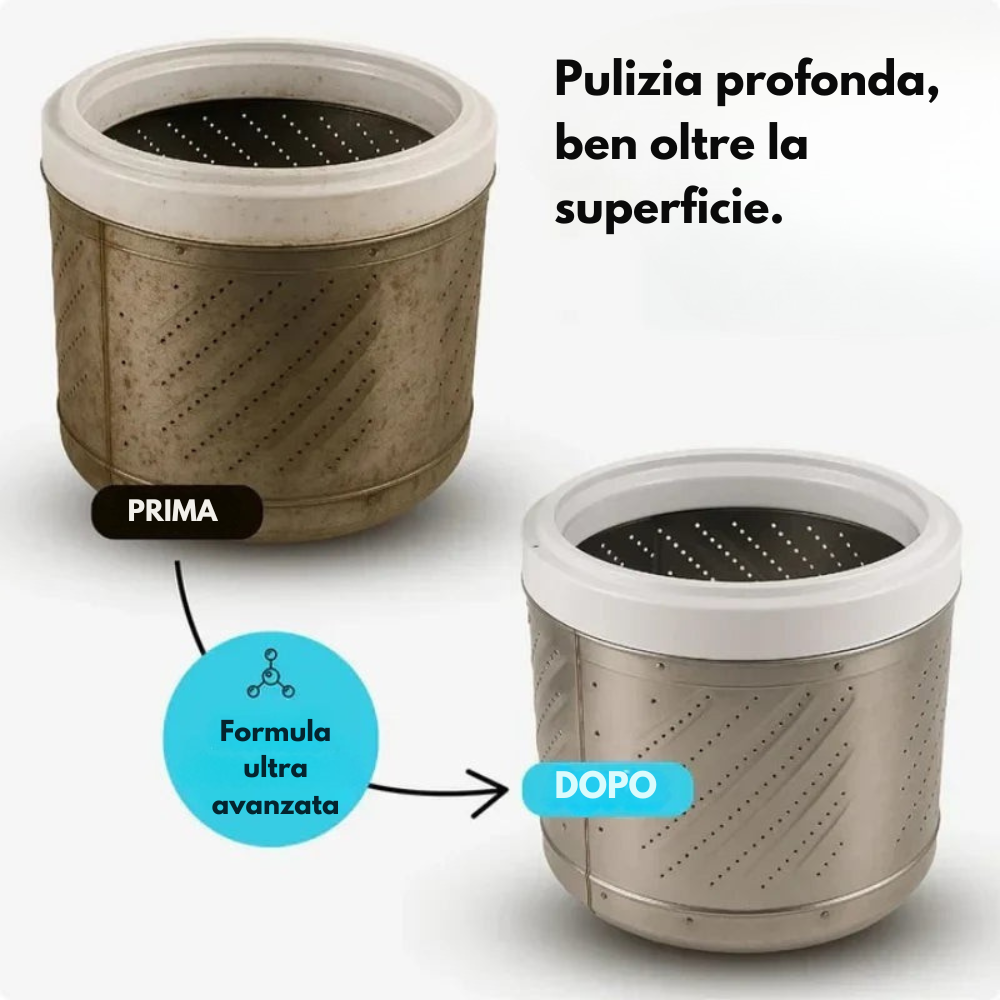 Le nostre pastiglie detox eliminano a fondo ciò che il detersivo lascia dietro ad ogni ciclo.