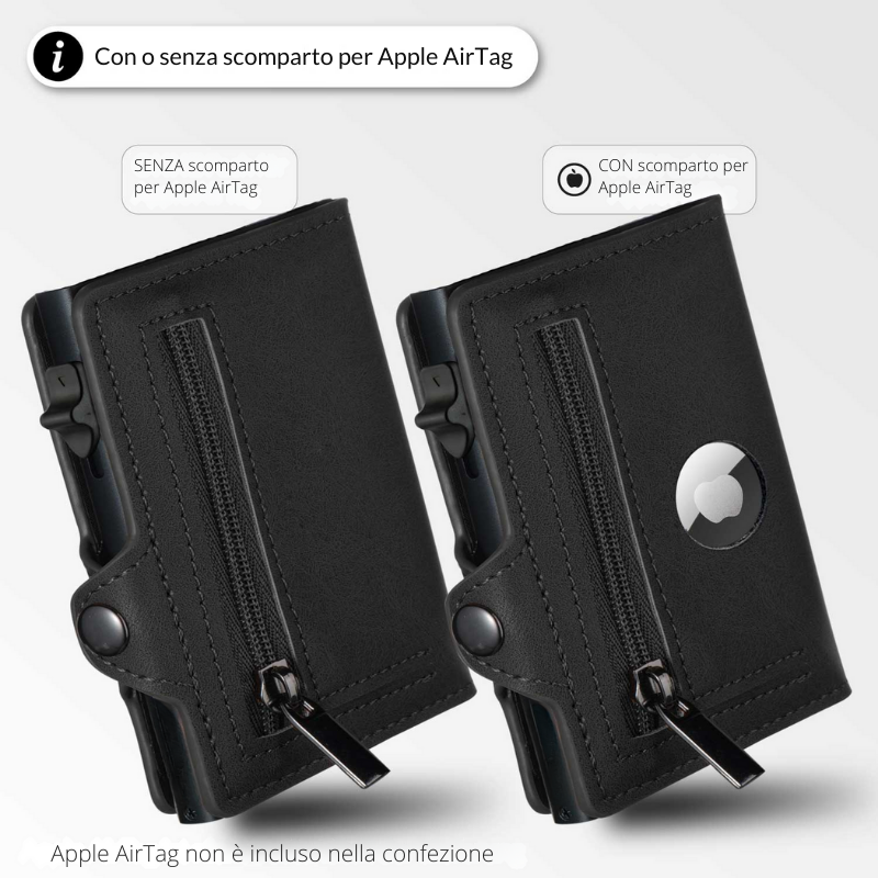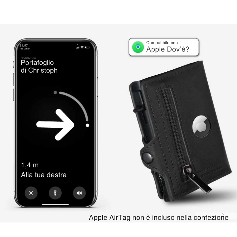 Puoi naturalmente utilizzare il portafoglio anche senza. Lo scomparto per AirTag è separato dal comparto portamonete, evitando così che le monete possano cadere.