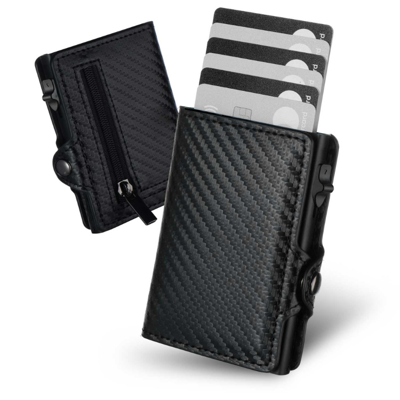 Questo portafoglio intelligente è dotato di uno strato di blocco RFID che impedisce il furto invisibile dei dati. Carte d’identità, titoli di trasporto, carte bancarie e carte di credito sono così protette da letture e utilizzi non autorizzati.